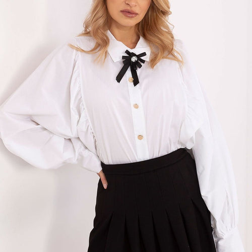 An elegant women's shirt is the perfect choice for formal occasions, special meetings, or everyday work outfits. Made of high-quality cotton with a touch of elastane, it provides comfort and excellent fit to the silhouette. Its classic, smooth pattern gives it a universal character, and its standard length makes it blend perfectly with various wardrobe pieces. A subtle ruffle along...
