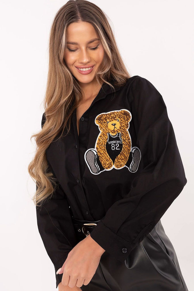 This casual women's shirt is a stylish everyday choice that combines classics with charming details. Made from a high-quality blend of cotton and elastane, it provides comfortable wear and a perfect fit, while allowing the skin to breathe. The smooth material and minimalist design make the shirt a versatile closet piece. On the front, attention is drawn to the teddy...