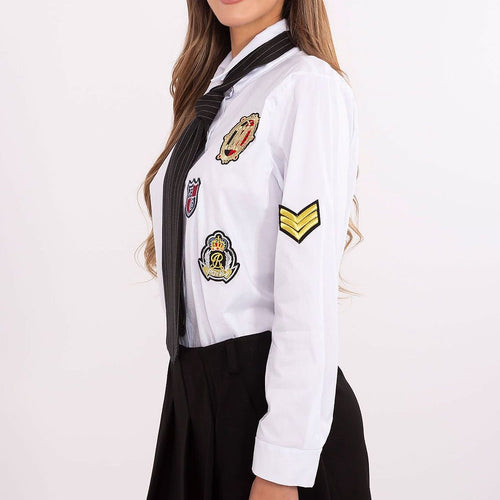 This classic women's shirt is a combination of elegance and modern style. Made from a high-quality blend of polyester and elastane, it provides comfortable wear and gently accentuates the silhouette. Sewn-in shoulder pads give the shirt a distinctive character, emphasizing the shoulder line and adding a chic touch. The smooth design makes the shirt a versatile closet item, ideal for...
