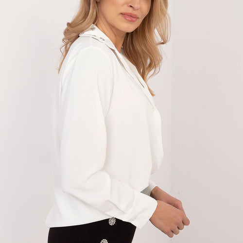 Women's shirt with a classic cut, perfect for elegant occasions and for everyday office styling. Made of a combination of polyester and viscose, making it comfortable to wear and durable. The smooth material gives it versatility, allowing easy matching to different outfits and accessories. Standard length and long sleeves provide comfort and a professional look. The shirt has a delicate...