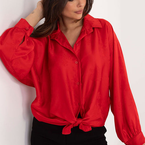 Elegant blouse with a refined character, perfect for formal occasions and parties. Made of shiny material that is a blend of polyester and viscose, which attracts attention and adds a touch of glamour to the outfit. The blouse has a varied texture of the material, giving it a unique look. It has long sleeves and a flowing neckline that beautifully...