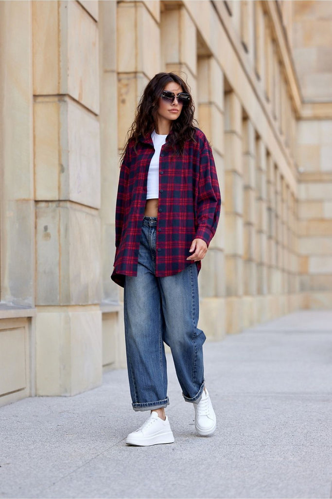 Made from high-quality thick flannel-like material, this shirt is a true must-have in every woman's wardrobe. Its elongated back adds a unique character, making it perfect for many occasions. Equipped with a classic collar and cuffs with two buttons. The dropped shoulder line provides perfect style and wearing comfort, making it an ideal choice for any season. Pair this shirt...