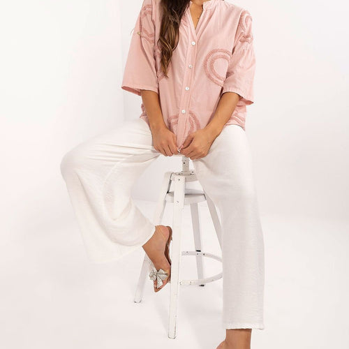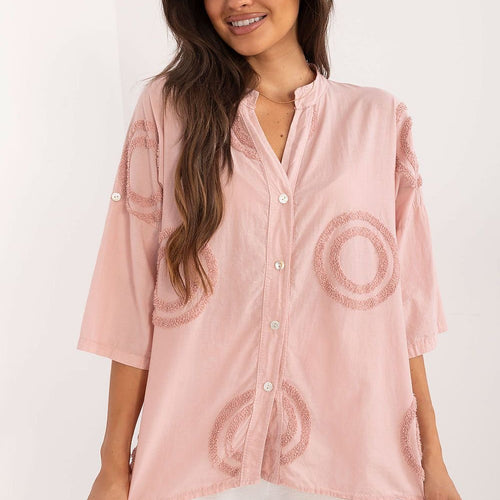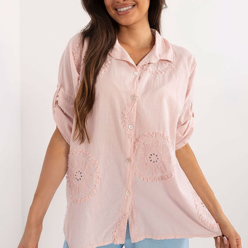 This casual women's shirt is the perfect choice for everyday styling. Made of high-quality cotton, it provides comfort and breathability throughout the day. The standard-length shirt is characterized by 3/4 sleeves, which add lightness and casualness. The classic collar and button closure give it an elegant yet casual look. Decorative openwork embroidery adds a unique, feminine touch, making the shirt...