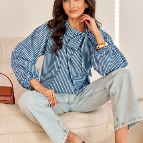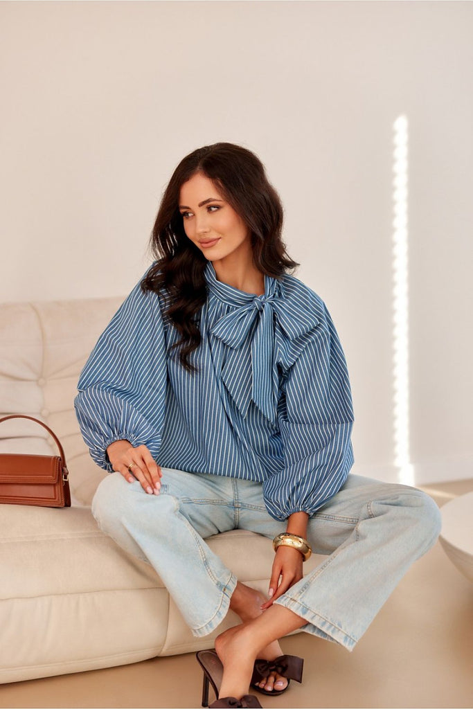 Blouse with long, puffy sleeves with elastic cuffs. It has a decorative tie at the neckline. Cotton 100 % Size Chest 36 88 cm 38 92 cm 40 96 cm 42 100 cm