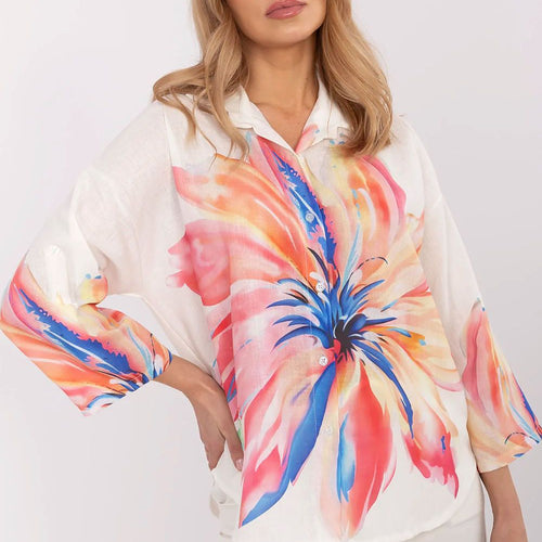 Light and stylish casual women's shirt, perfect for everyday wear. Made of a breathable blend of linen and polyester, it provides comfort throughout the day. It has a classic collar and a convenient button fastening. 3/4 sleeves add a casual character to it, and the standard length makes it look great both tucked into pants and worn loosely. The dominant...