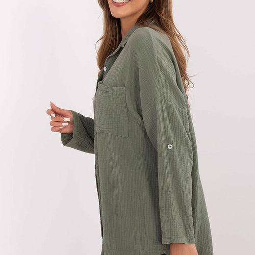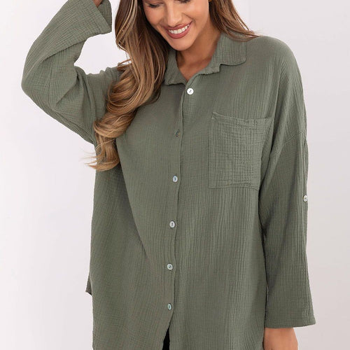 Women's muslin shirt is a light and breathable proposal perfect for everyday wear. Made of 100% cotton, it provides maximum comfort and a pleasant feeling on the skin. Its loose, casual cut with a longer length makes it perfect for both classic and more casual stylings. The shirt has long sleeves with the option to roll them up, allowing for...