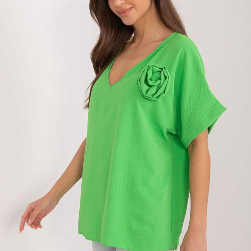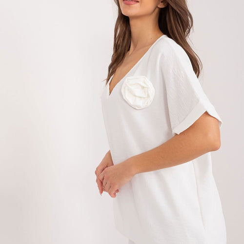This casual blouse is perfect for everyday outings, combining comfort and style. Its front is decorated with printed flowers, which add charm and summer atmosphere to the blouse. Made mainly of cotton, the blouse is pleasant to the touch and provides comfort for all-day wear. It has a standard length and short sleeves, making it versatile and suitable for various...