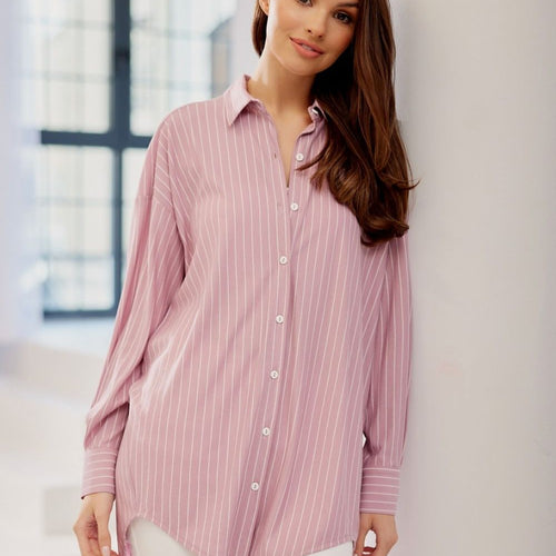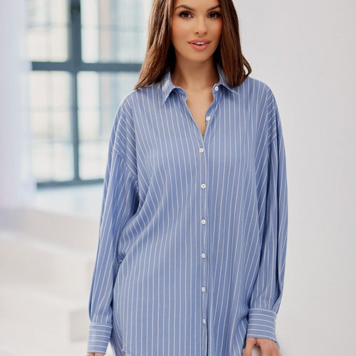 Women's striped shirt is distinguished by its oversize cut, which will guarantee comfort and ease of wear. The button-adjustable closure will allow you to adjust the neckline independently. The shirt is made of high-quality fabric, which will allow a long time of use. The shirt is characterized by a loose cut that will hide any imperfections. Its shorter front and...