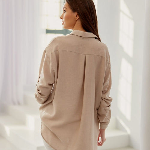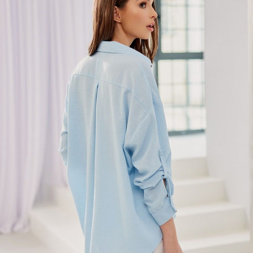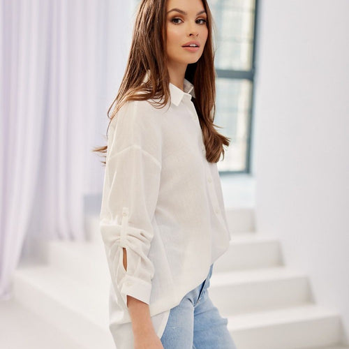 The Aria shirt is a loose model with an asymmetrical bottom, which breaks the classic look of the shirt in an interesting way. The button fastening allows you to adjust the size of the neckline depending on the circumstances and your preferences. The long sleeves are finished with 2-button cuffs. The traditional collar provides a classic and elegant form of...