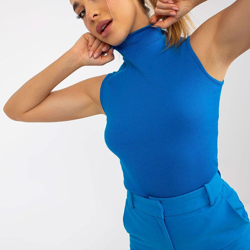 Top with a half turtleneck, with a straight cut. The top is made of ribbed fabric. Cotton 95 % Spandex 5 % Size Chest L 91 cm M 86 cm S 82 cm