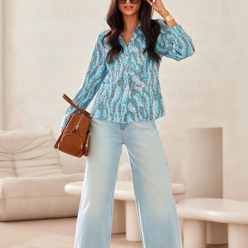 The classic cut shirt with a collar has long sleeves buttoned with cuffs that can be rolled up. The shirt has a V-neckline that will skillfully expose your neckline, making you feel feminine while maintaining class. It is buttoned at the front with small buttons. An excellent base for many styling options, paired with your fitted jeans, wide-legged pants, or...