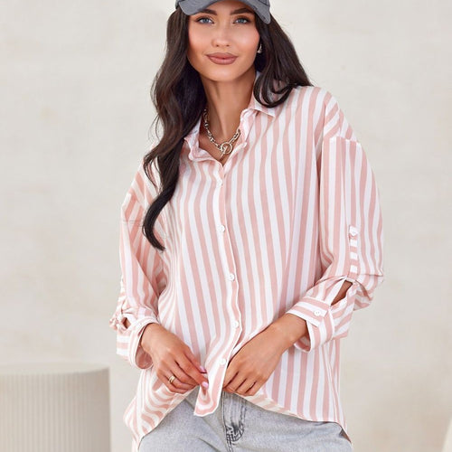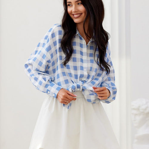 The women's shirt features an oversized cut that will cover any imperfections. Its shorter front and longer back give it a wonderful, asymmetrical character. The shirt is made of high-quality fabric that allows for long-term use. It is further enriched with an aesthetic collar, cuffs, and a front button closure. Buttons in the color of the product. A rich range...