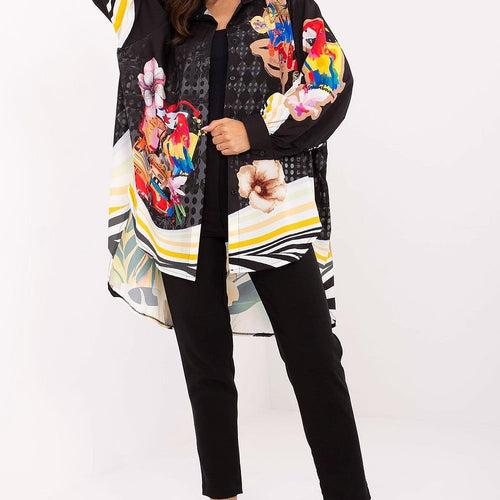 Stylish women's oversized shirt with a casual character, perfect for everyday wear, work, parties, and more formal occasions. Made of a lightweight and pleasant to the touch blend of polyester and viscose, it ensures comfort and freedom of movement. The long cut with an extended back gives it a fashionable, modern look, while the colorful print adds boldness and character....