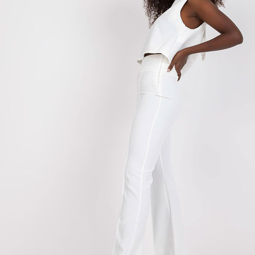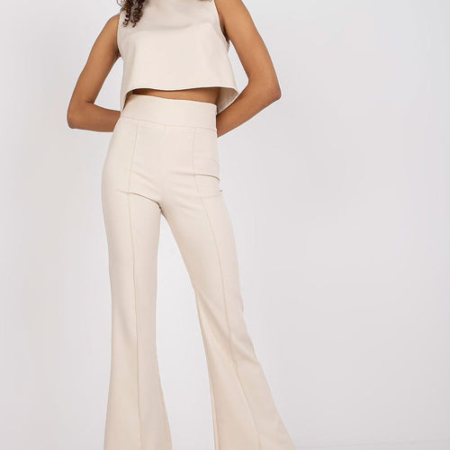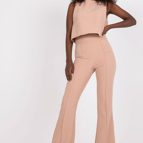 Elegant set consisting of a blouse and long pants. Short sleeveless blouse with a tie at the back. Long pants with high waist, fastened with a covered zip. A perfect set for many occasions. Spandex 5 % Polyester 95 % Size Lenght Chest Waist S 43/113 cm 88 cm 66 cm