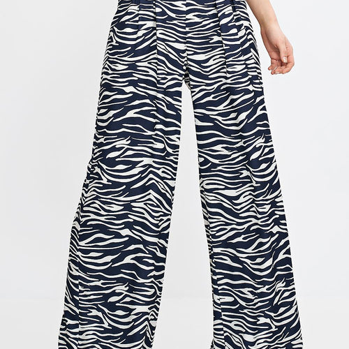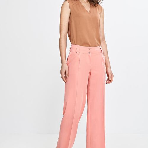 Stylish women's pants with a regular cut and high waist. Decorative pleats at the front add elegance and subtly shape the silhouette. Wide, long palazzo-style legs give a lightness and striking appearance. Fastened at the back with a discreet zipper, they provide comfort and a perfect fit. Perfect for both everyday and more formal stylings. Polyester 95 % Spandex 5...