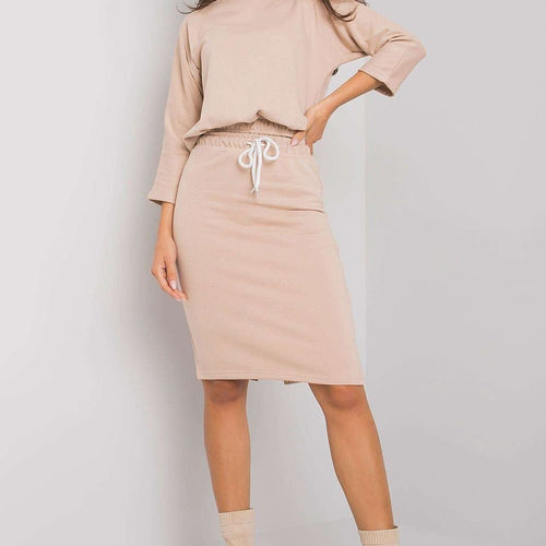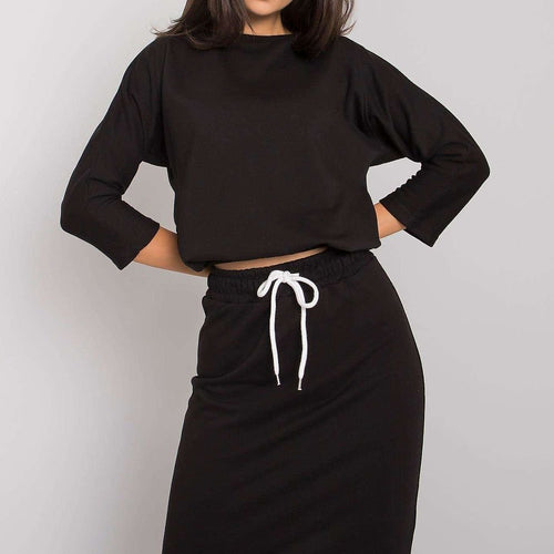 A set consisting of a blouse and a skirt. Blouse with 3/4 sleeves, at the bottom ribbed. Skirt in pencil cut with tie at waist. Cotton 70 % Polyester 30 % Size Lenght Chest Waist one-size-fits-all 49/60 cm 92 cm 72 cm