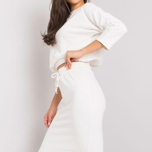 Tracksuit set consisting of a sweatshirt and skirt. Blouse with long sleeves and round neckline. Skirt with waist tie and slip pockets. Cotton 70 % Polyester 30 % Size Lenght Chest Waist one-size-fits-all 54/63 cm 110 cm 70 cm