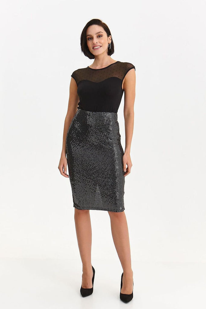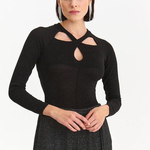 Women's body with a fitted cut, which adheres to the female figure and exposes its assets. It has straight long sleeves and is enriched with eye-catching cut-outs at the top above the bust. It is made of high-quality and pleasant-to-touch knitwear with an addition of metallic thread, captivating with its softness and shine. It will go well with various women's...