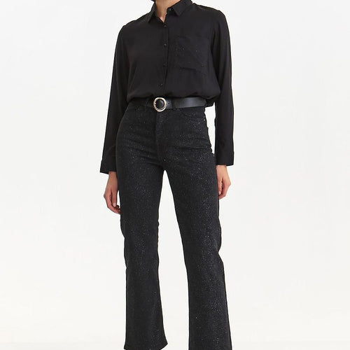 Classic in its style and cut, this women's shirt has simple long sleeves ending in a cuff with a button closure. It has a collar and is buttoned at the front, being enriched with a decorative pocket with small studs on the front left side at bust level. It was made of viscose fabric that is pleasant to the touch...