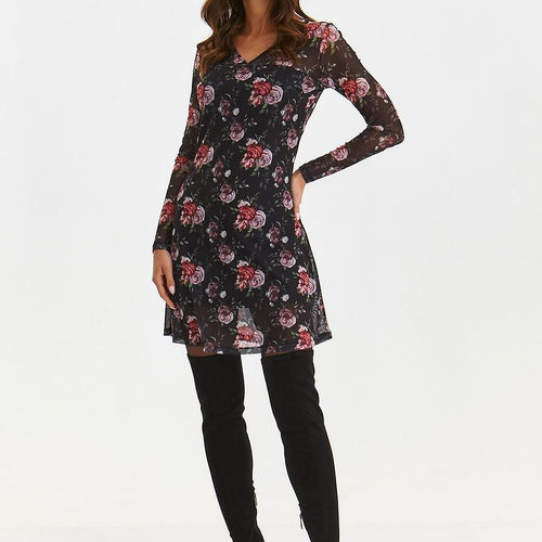 The fitted dress is elegance at its best! With long sleeves and a subtly finished heart neckline, it presents delicacy. The material with colorful flowers adds to its unique beauty, especially due to its transparency. The whole is complemented by a lining, which guarantees comfort of wearing and adds unique charm to the dress. An ideal choice for evening outings...