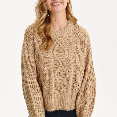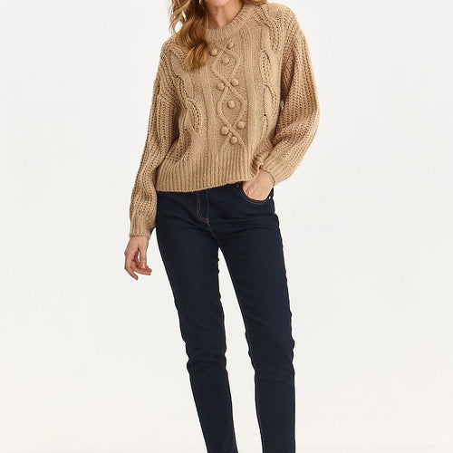 Thick sweater with long sleeves and round neckline is an excellent choice for winter days. Its distinctive feature is the original and fancy weave on the front, which gives it a unique look. Thanks to its thick material, it will be perfect for colder days, providing comfort and warmth. It fits perfectly into many styles, adding a unique touch to...