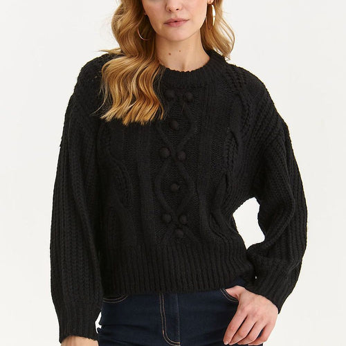 The long sleeve and round neckline make this sweater both practical and versatile. Its main asset is the braided pattern embellishments placed on the front, giving it a unique character and style. This is an excellent choice for those who are looking for something unique in everyday wear, combining comfort with designer touches. Acrylic 57 % Spandex 3 % Polyester...