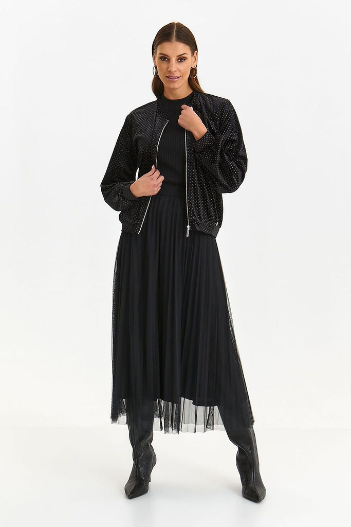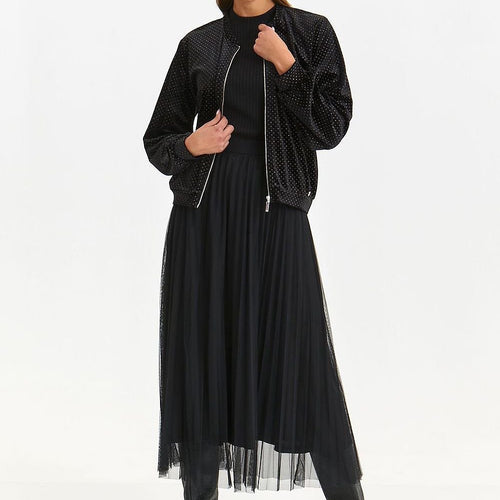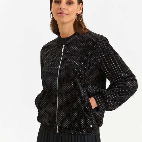 A bomber jacket is the perfect complement to many outfits, and this one stands out with a glittering pattern that adds a unique sparkle. Long sleeves, a convenient zipper closure and practical pockets are features that ensure comfort and functionality. It is a classic cut that reveals a bit of the hips, which adds a casual touch to the styling....