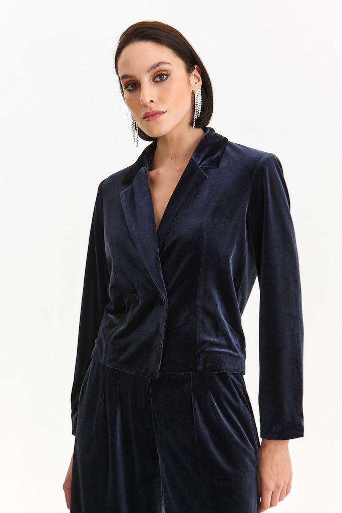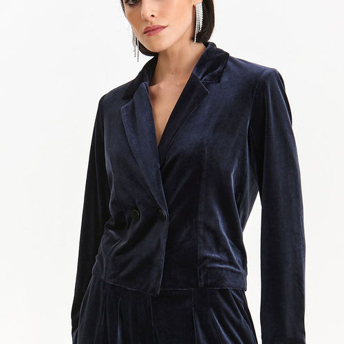 This elegant short jacket with long sleeves is made of velour that is pleasant to the touch. It has a pronounced double-breasted closure that adds to its sophisticated look. Thanks to its short cut, it perfectly accentuates the waist and is perfect for ensembles where you want to emphasize your elegant style. It is ideal for many occasions, both the...