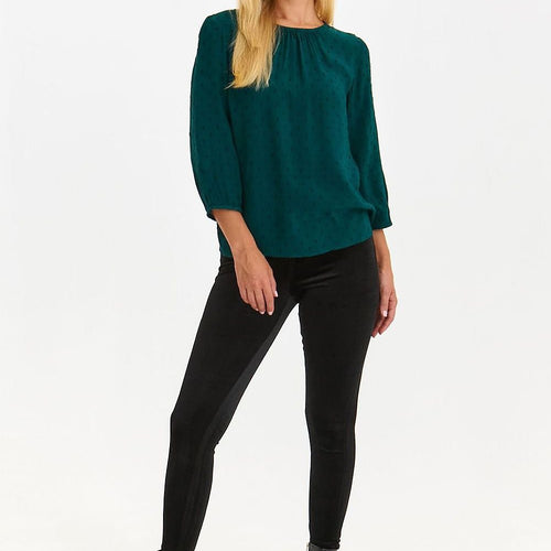 Comfortable to wear, this women's blouse has a loose fit with gently buffed 3/4 length sleeves ending in a loose elastic band. It has a magnificent round neckline with a delicate crease at the front and a button closure at the back. It is made of pleasant to the touch and good quality viscose knit, enriched with a delicate dot...