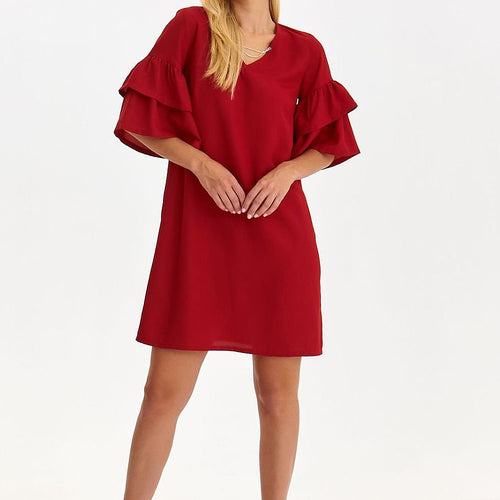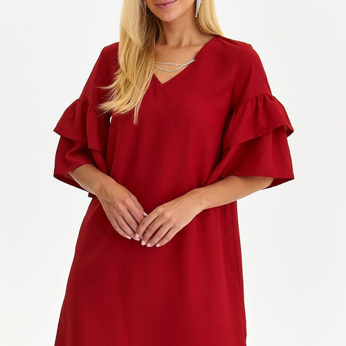 The loose-fitting dress with a delicate cut looks extremely light and charming. Its short sleeves are decorated with subtle ruffles, adding elegance. The heart neckline with a decorative chain is feminine and versatile, while the solid material emphasizes simplicity and comfort. This dress is perfect for walks or relaxing meetings with friends. Polyester 100 % Size Lenght Chest 34 92...