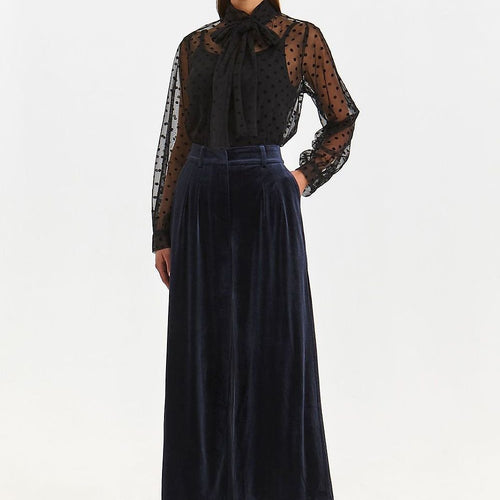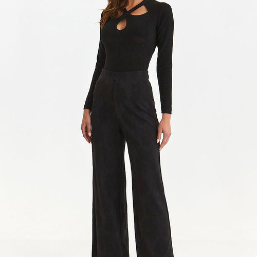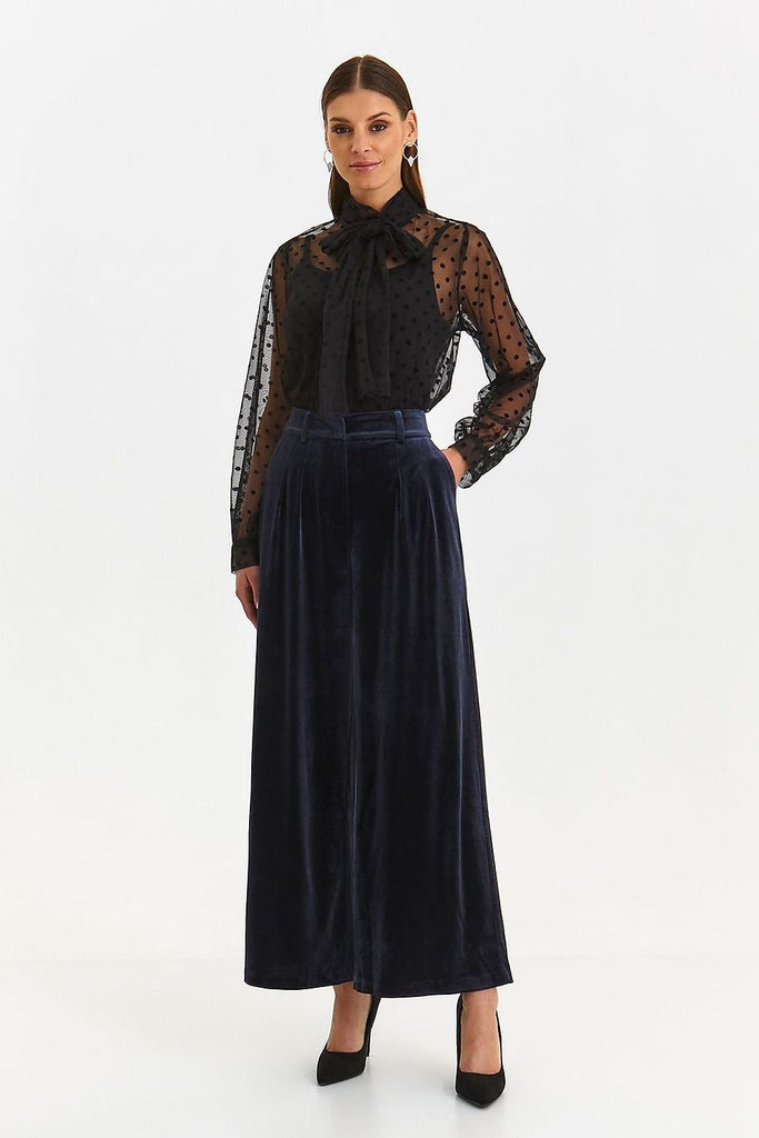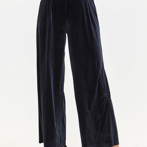 These fabric pants are a combination of style and comfort. Their original embellishment in the form of decorative pleats adds subtle charm. Fastened with a zipper and hook-and-loop closure, they ensure a perfect fit, while the slip pockets are a practical addition, perfect for storing the most necessary items. The wide legs not only make them comfortable to wear, but...