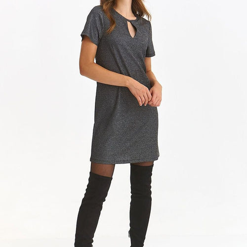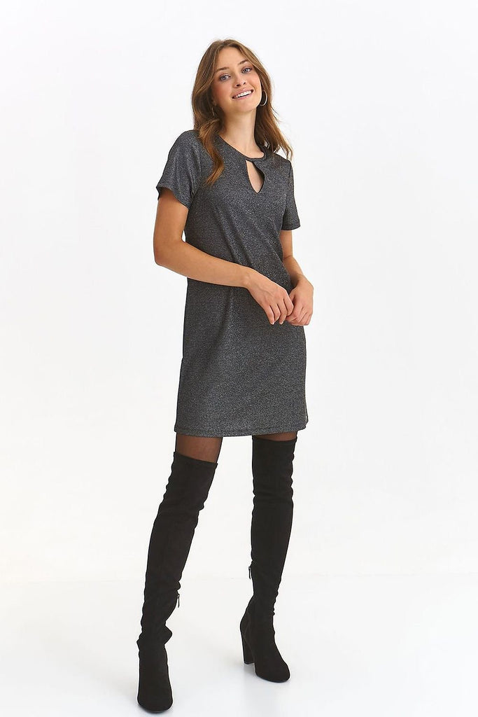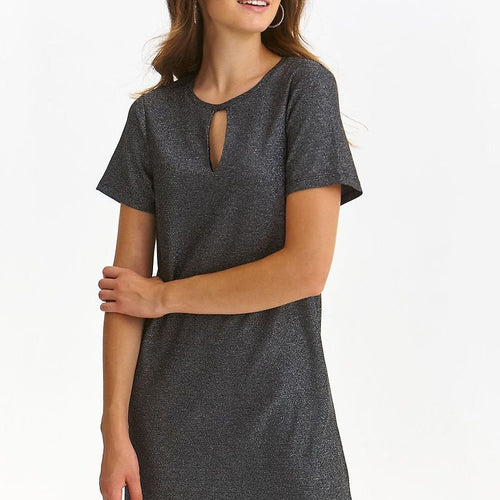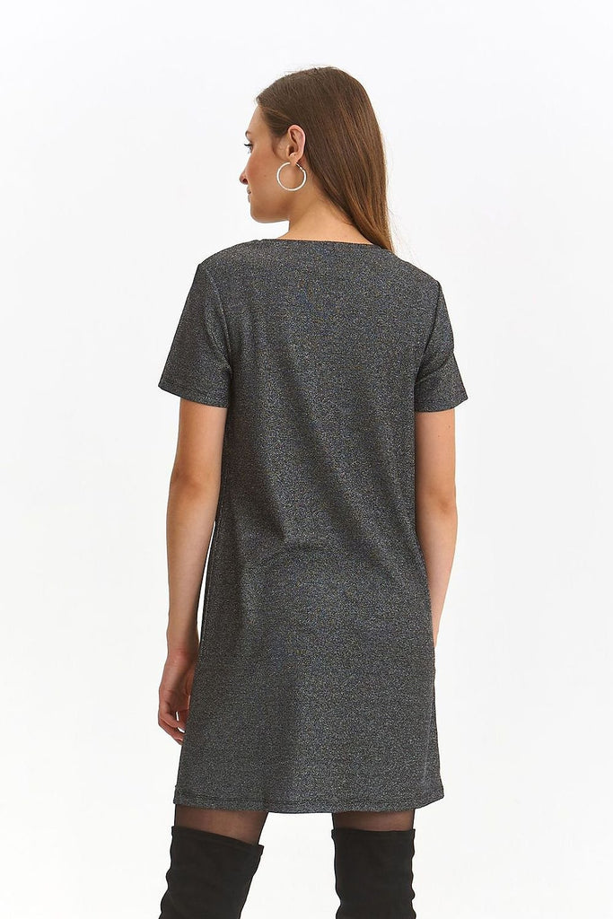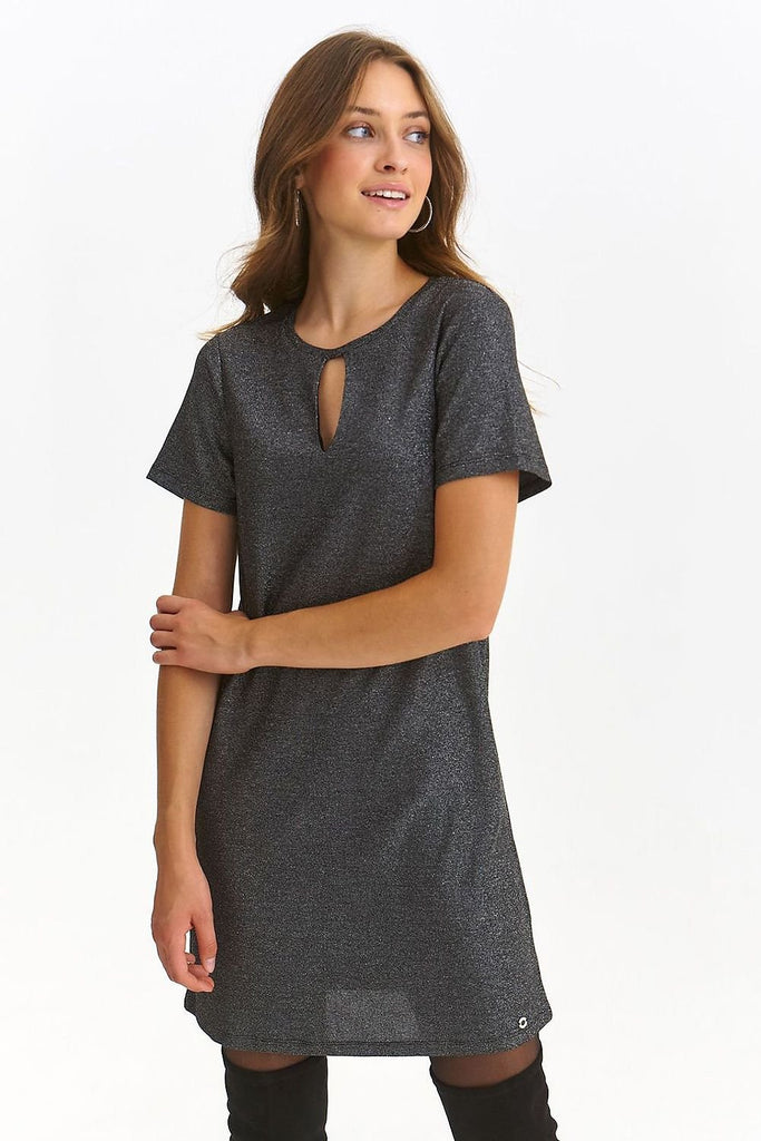 This charming short-sleeved dress is the perfect choice for many occasions. Its subtle sheen, caused by the presence of metallic thread, gives it elegance, and the break at the neckline adds a touch of chicness. The dress is designed to accentuate a woman's figure and feel comfortable. With its unique fabric with shimmering thread, it is sure to attract attention...