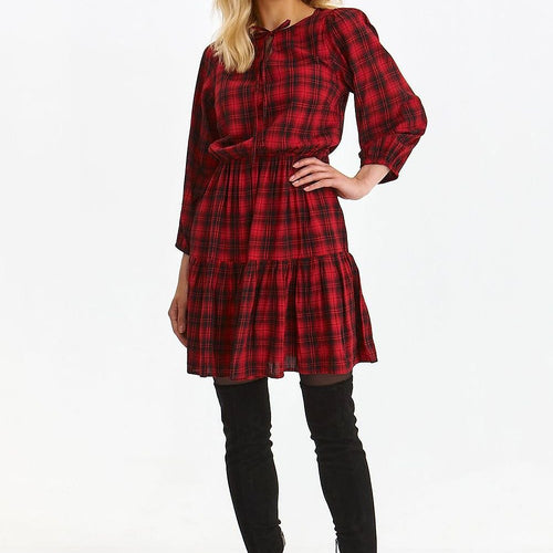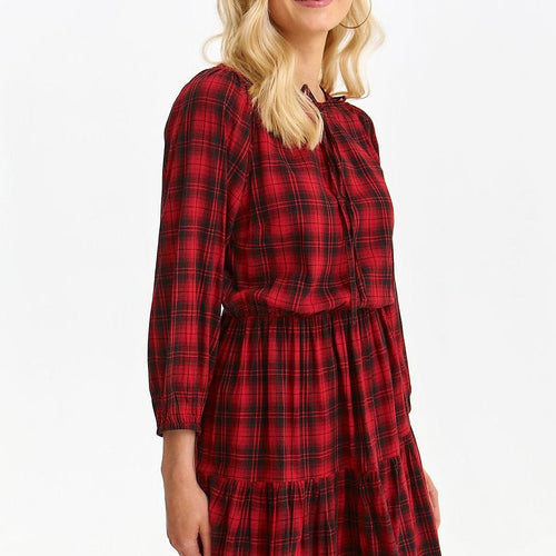 Checkered dress with a ruffle is the perfect choice for many occasions. Its elegant cut with a neckline, which is decorated with a charming binding, gives it a unique charm. Made of comfortable fabric, this dress will give you confidence and style. Perfect for evening outings or social gatherings. Viscose 100 % Size Lenght Hips Chest Waist 34 91 cm...