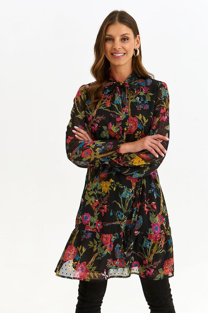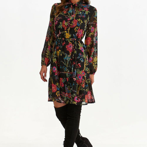 This printed dress is the quintessence of style and romance. The billowing long sleeves, charming collar and waist tie give it elegance, while the ruffle at the bottom adds lightness and girlish charm. This is the perfect dress for romantic dates, evening outings or summer parties. Create a unique styling and impress with your look. Polyester 100 % Size Lenght...