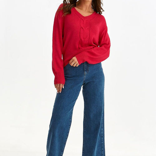 Overflowing with charm and unusual charm, this women's boxy sweater features a simple long sleeve finished with a wide ribbed hem. It has a very striking v-neck and a decorative interwoven braid along the entire front, being further enhanced by a wide ribbed hem at its bottom. It was made of a very pleasant to the touch and warm acrylic...