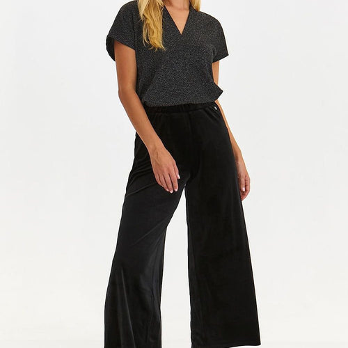 Filled with convenience and great comfort during use, these ankle length women's pants with straight and very wide legs. They have a wide and practical elastic waistband and striking side pockets, being made of pleasant to the touch and good quality knit fabric. They can be successfully used both as a part of official styling for work, as well as...