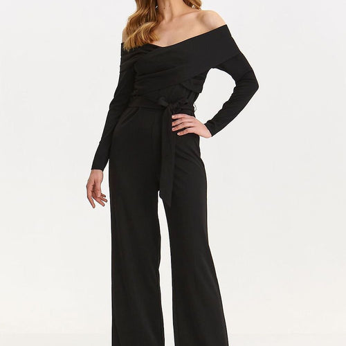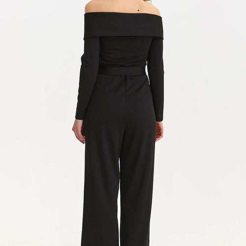 This elegant women's jumpsuit has a relaxed style with straight long and wide legs. It has straight long sleeves and exposed shoulders, captivating with its softness and delicacy, while the charm is added by the practical binding at the waist with the use of a belt made of the same material and the striking interlacing at the front at the...