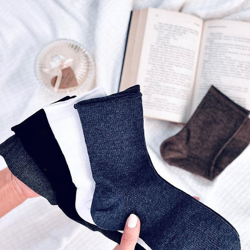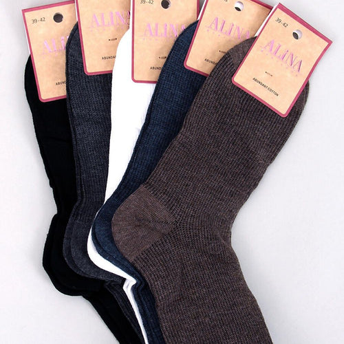 Smooth women's socks - a set of five pairs. Set with classic colors that will work in any situation.... They are so versatile and at the same time nice to the touch, so they will surely steal your hearts : ) Cotton 80 % Spandex 7 % polyamide 13 %