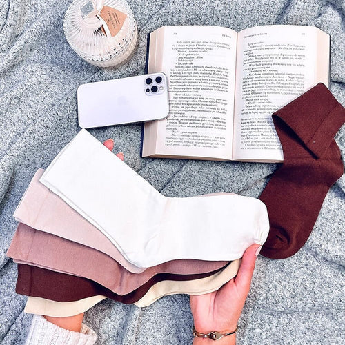 Smooth women's socks - a set of five pairs. Set with a beautiful range of colors - beige and brown.... They are so versatile and at the same time nice to the touch, so you are sure to fall in love with them to the ears : ) Cotton 95 % ~Spandex 5 %