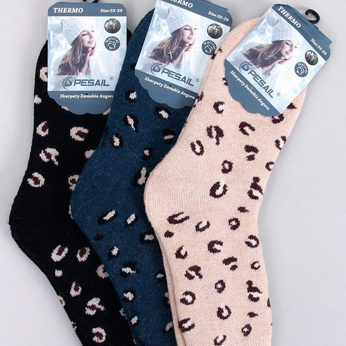 Women's winter socks - a set of three pairs. They have a pattern in spots, which will surely catch your eye : ) They are extremely warm - perfect for winter : ) They will also work perfectly for a gift.... ~Angora 95 % Spandex 5 %
