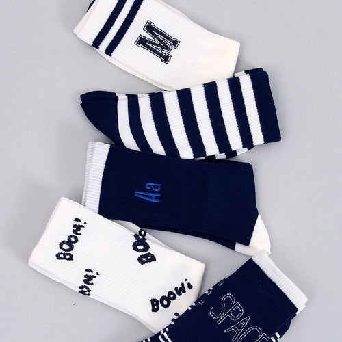 Long women's cotton socks - set of 5 pairs. They have a universal cut with various patterns - they will surely catch your eye : ) They will also be a perfect gift idea... Cotton 95 % ~Spandex 5 %