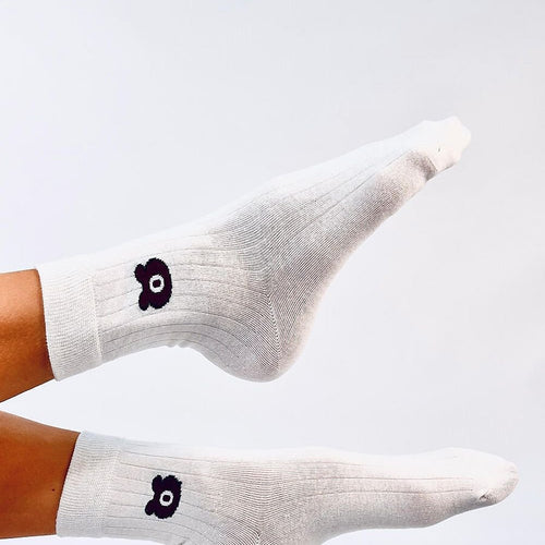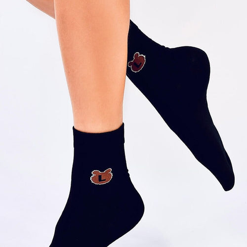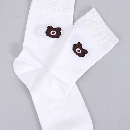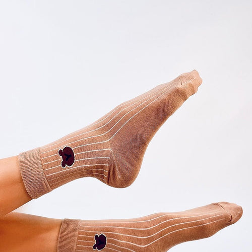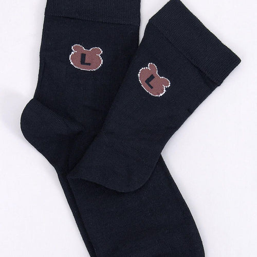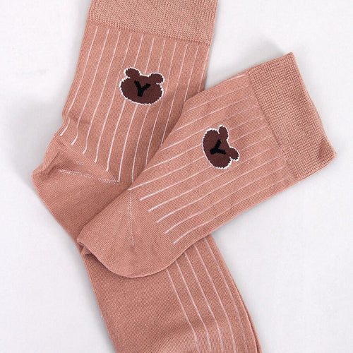 Women's long socks. Cute accent - teddy bear will surely steal your hearts : ) They are also perfect for a gift.... They are made of a very nice to the touch combination of cotton and elastin. COMPOSITION: 95% cotton, 5% elastin Cotton 95 % Spandex 5 %