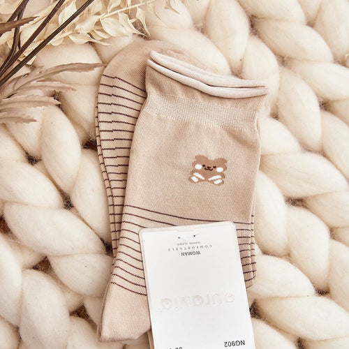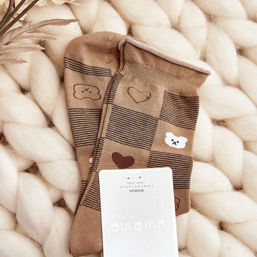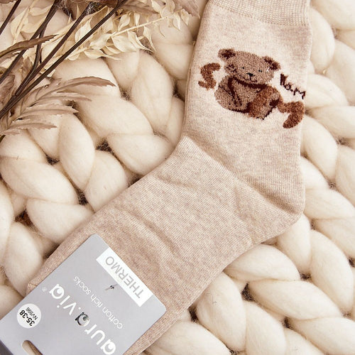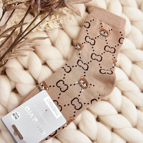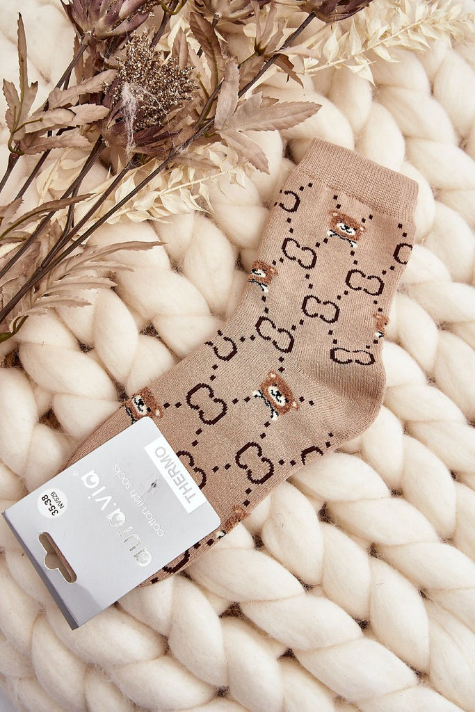 Warm women's socks ideal for cold days. Model with a patch in the form of a teddy bear. The lightweight ribbing will make them perfectly adapted to the leg's stiffness. You should definitely have them! Cotton 85 % Spandex 5 % polyamide 10 %
