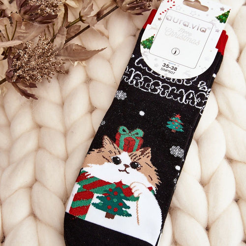 Beautifully packaged socks with Christmas motifs are perfect for a gift ! They were made mainly of cotton. Under the foot they have non-slip elements. At the top of the sock there is a pleasant to the touch warming. They are great for cold days! Choose your favorite model! Cotton 85 % Spandex 5 % polyamide 10 %