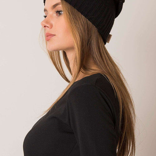 Women's winter hat with a smooth texture with decorative pearls. Acrylic 70 % wool 30 %