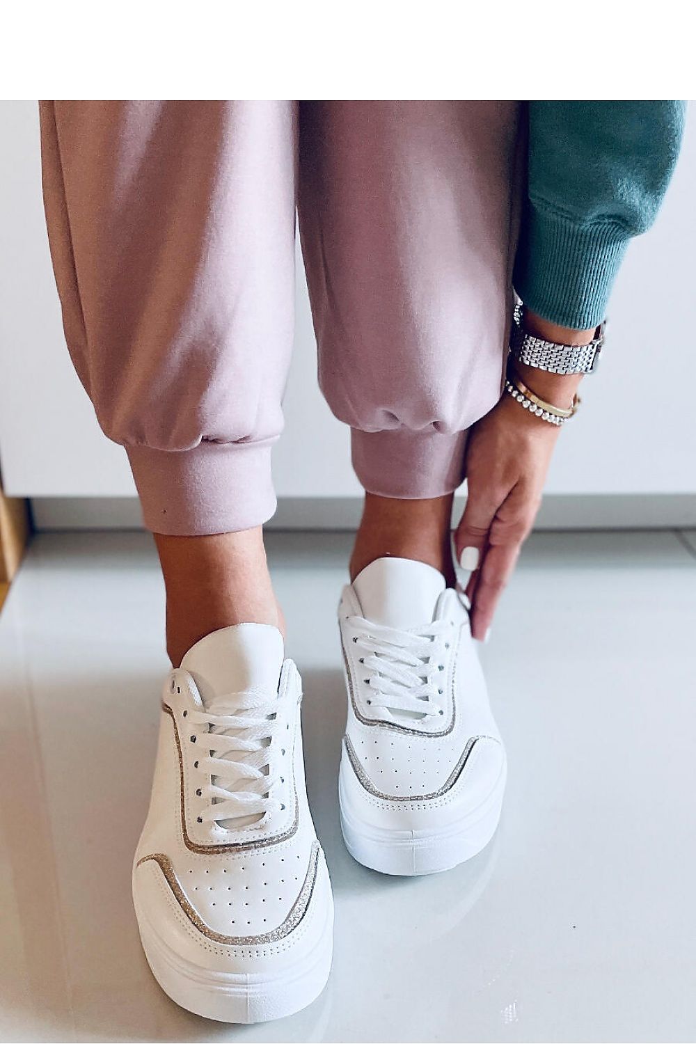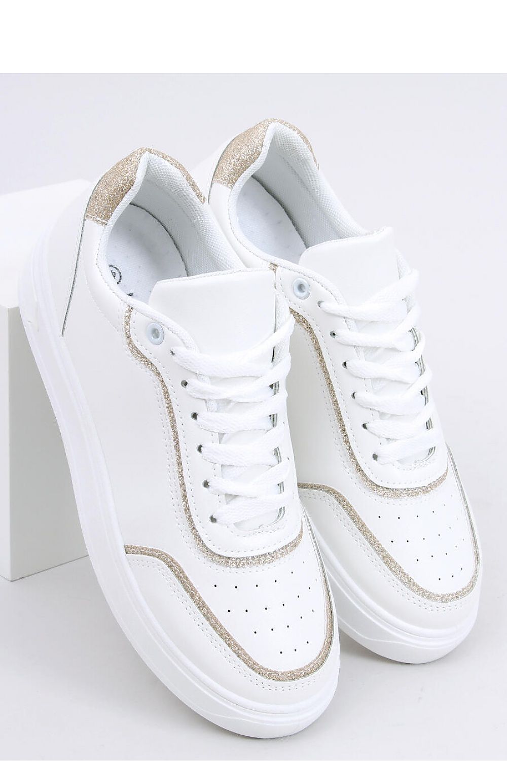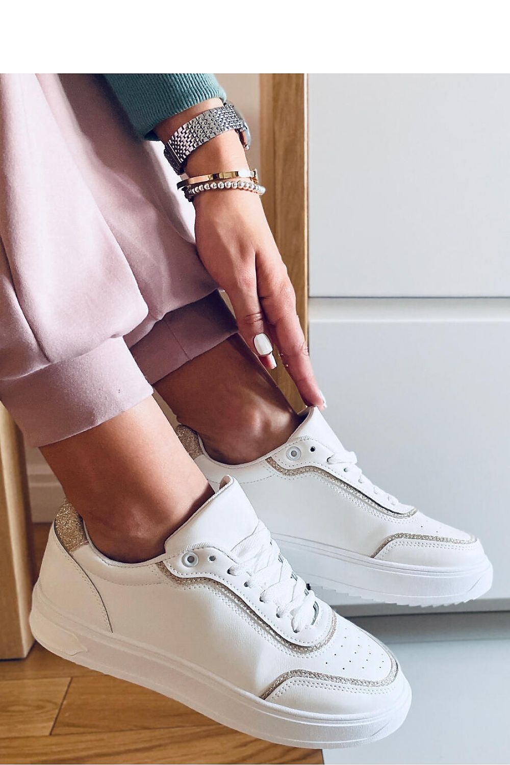 Lace-up women's sports shoes - sneakers. Model in a universal white color with gold glitter accessories will attract all eyes : ) Not only do they look great, but they are also mega comfortable! They are made of organic leather, and the interior is lined with fabric.