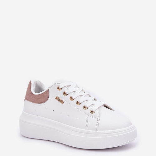 Stylish women's sneakers made of eco leather. Set on a trendy platform, subtly elevate the silhouette, adding lightness to it. The perforated upper provides breathability, making the shoes perfect for warmer days. The delicate gold detail on the upper adds elegance and style, making the model stand out from the others. These sneakers are a great choice for both everyday...