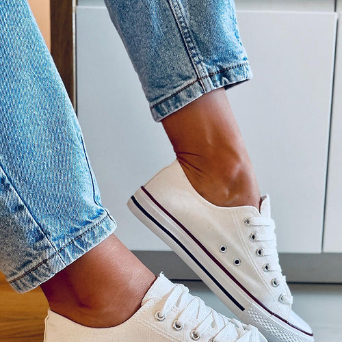 Women's sneakers on a rubber sole with piping all around in a classic design. Let yourself have fun with the season's trendiest colors! They are very comfortable and timeless. Outer and inner material ? fabric. fabric ~p?ótno Footbed ~p?ótno Size Insole lenght 36 23 cm 37 23,5 cm 38 24 cm 39 24,5 cm 40 25 cm 41 25,5 cm...