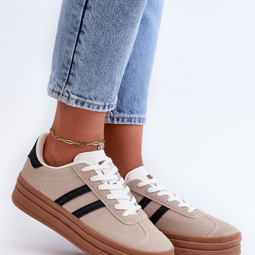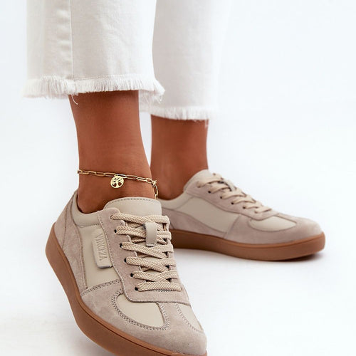 Fashionable women's sneakers, made of natural suede, are the perfect combination of style and comfort. Low, lace-up shoes are perfect for both casual and more elegant outfits. The soft insole ensures comfortable all-day wear. Ideal for walks in the city, shopping or meetings with friends, they are a fashionable and practical addition to any closet. fabric ~skóra naturalna zamszowa Footbed...