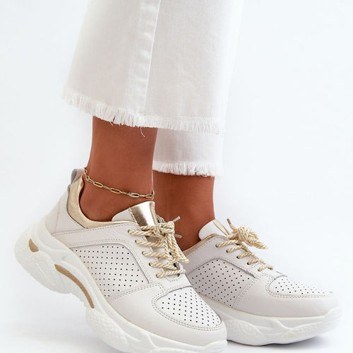 Women's sneakers by Vinceza. Made of natural leather, they guarantee durability and wearing comfort. Set on a massive platform. On the lacing a small decoration, which adds charm. Classic cut, which will perfectly complement many stylings. You absolutely must have them! fabric natural leather Footbed natural leather Upper height 6.5 cm Platform height 4.5 cm Size Insole lenght 36 23.5...